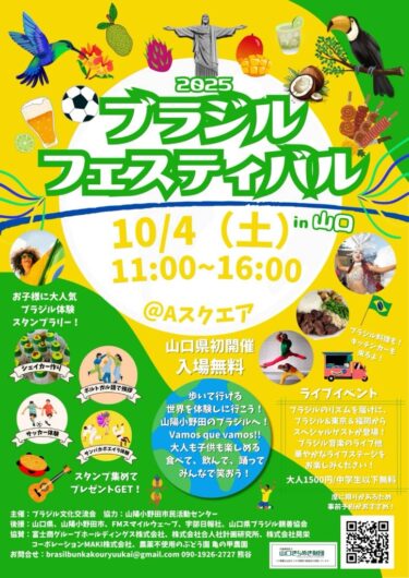 トレジャースタンプラリー対象の月間イベントです!山陽小野田市からブラジルの文化や食事に触れてみませんか?ブラジル体験スタンプラリーや雑貨販売などを実施します!